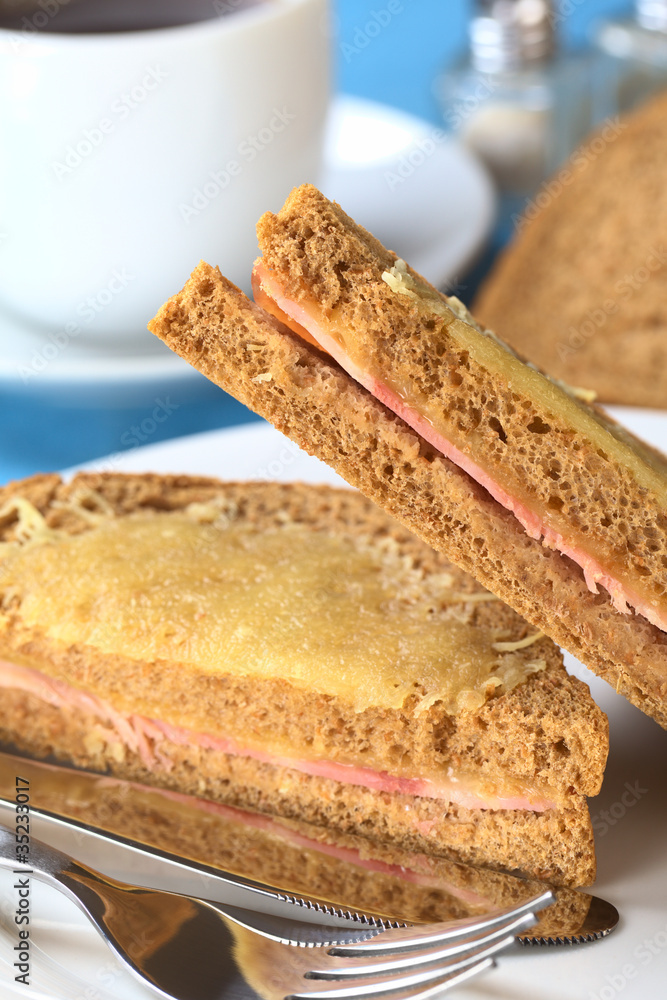 Fotografie Croque Monsieur. Baked wholewheat bread sandwich