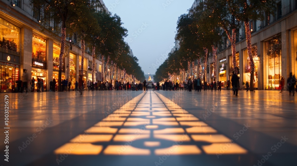 Fotografie Crowds shopping at Connaught Place during Diwali, with stores glowing in festive