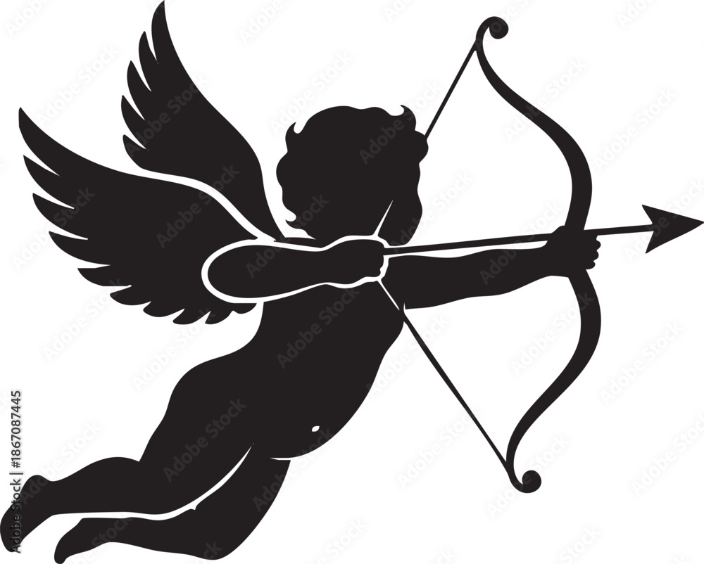 Fotografie Cupid silhouette flying with bow and arrow in hand