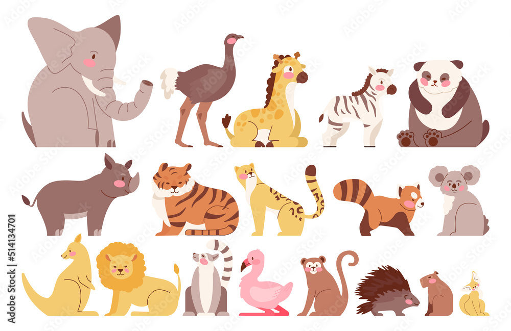Samolepka Cute animal set. Wild cats, elephant, monkey and lemur. Panda,