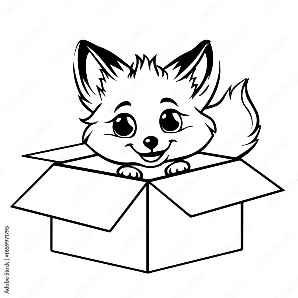 Fotografie Cute cartoon fox peeking out from a cardboard box with a playful expression and