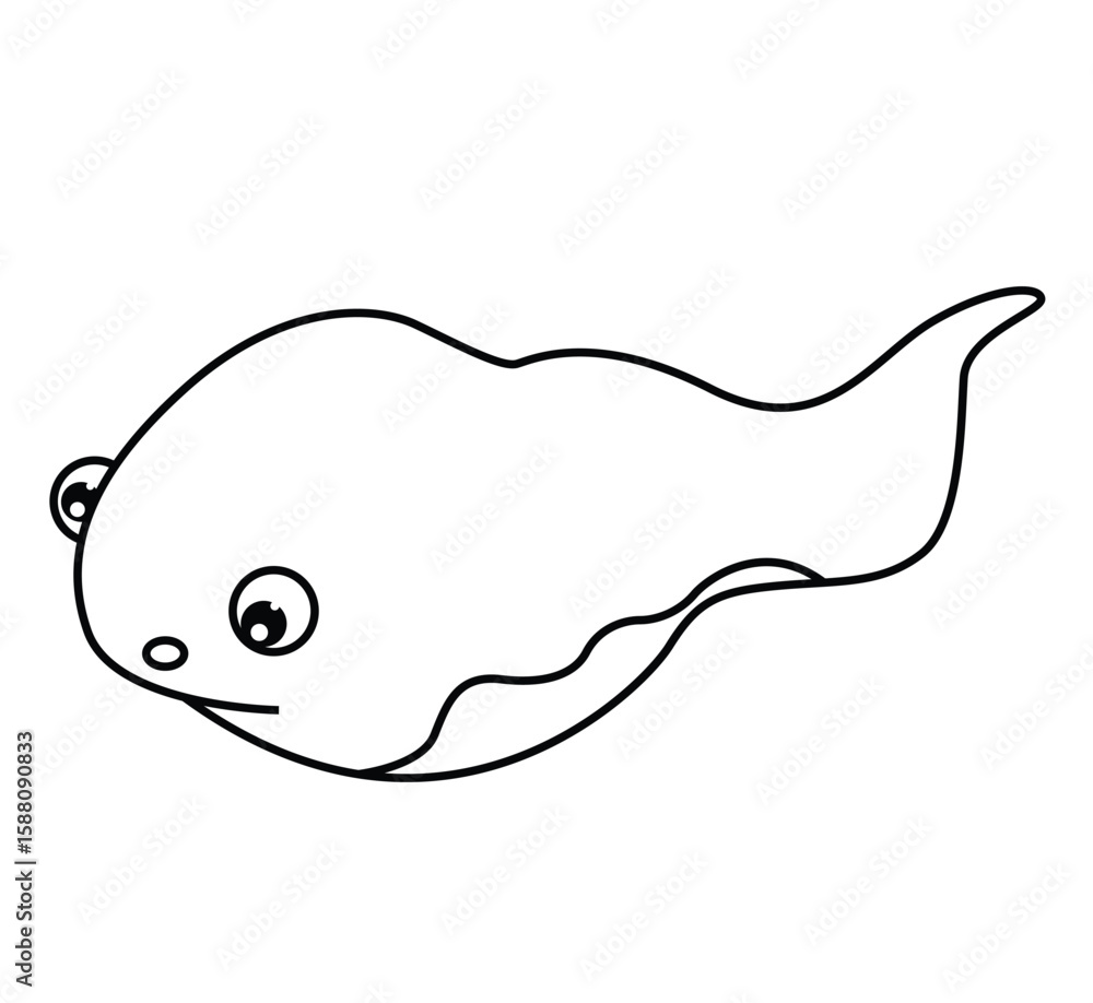 Fotografie Cute cartoon hand drawn vector tadpole outline.