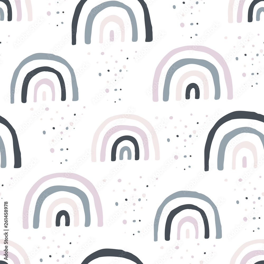 Fototapeta Cute doodle vector pattern with rainbows and clouds