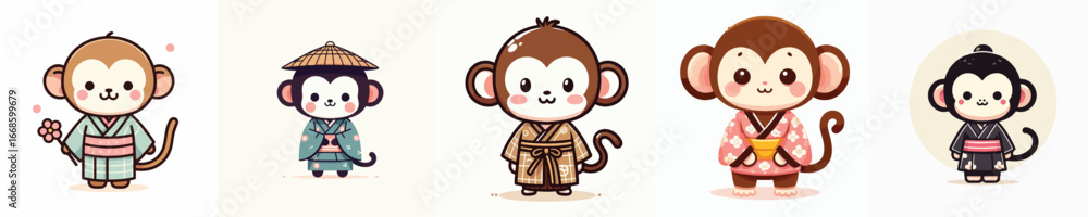 Fotografie cute monkey vector in kimono costume