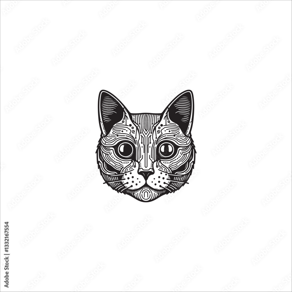Fotografie Cyberpunk cat head drawing artwork handmade illustration