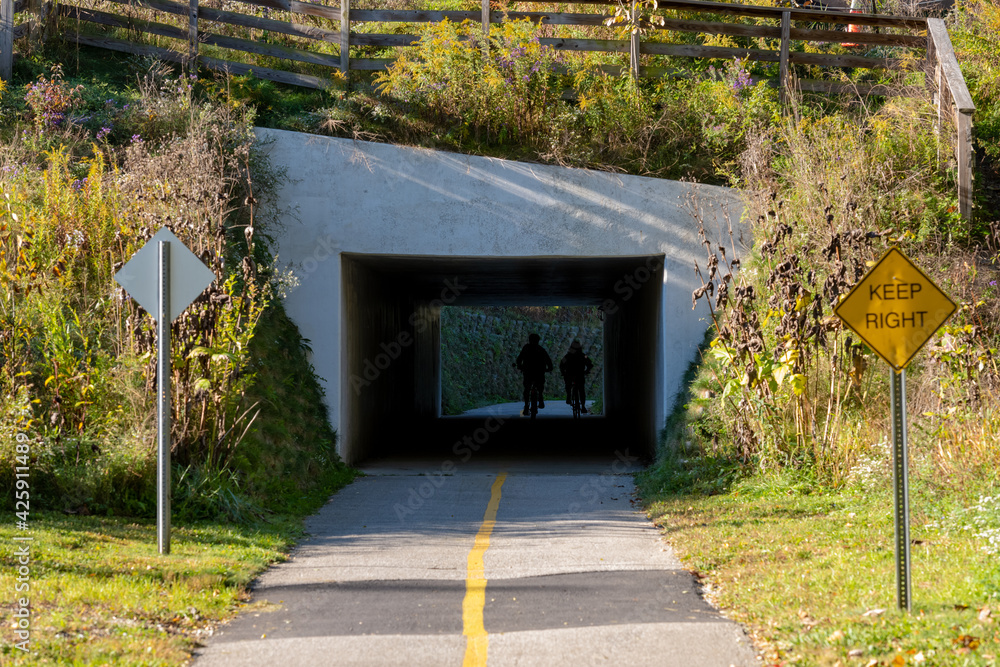 Fotografie Cyclists Pass Through Tunnel on a Biking Path
