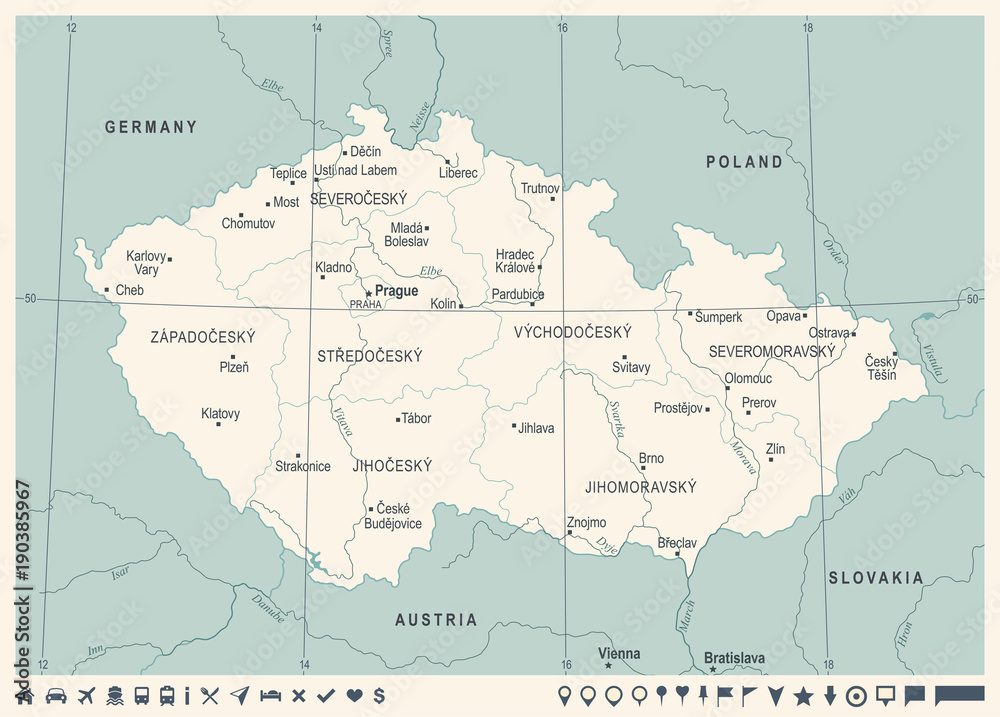Obraz na plátně Czech Republic Map - Vintage Detailed Vector Illustration