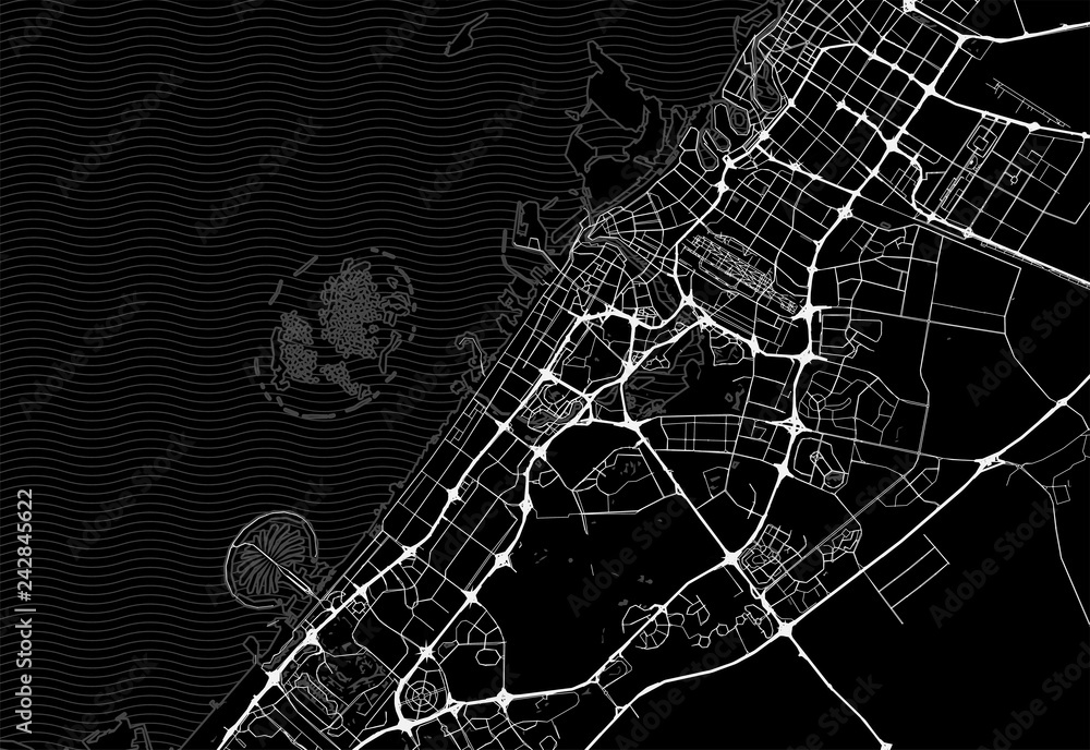 Obraz na plátně Dark area map of Dubai, United Arab Emirates