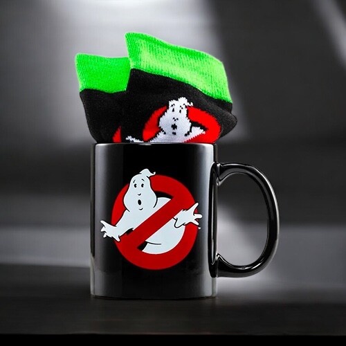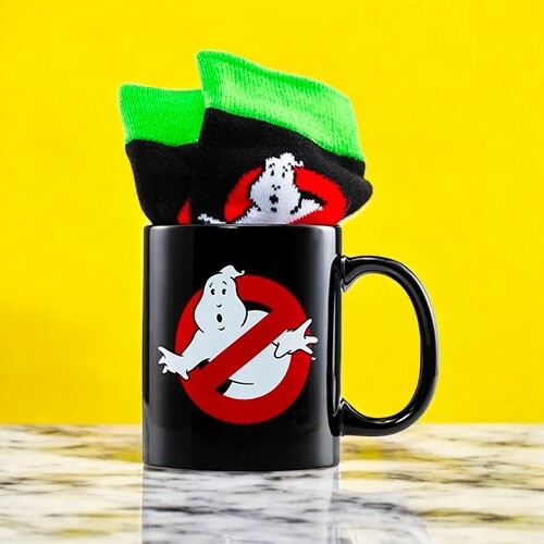 Stylová dárková sada pro fanoušky kultovního filmu Ghostbusters obsahuje keramický hrnek o objemu 315 ml s ikonickým logem „No Ghost“ a pohodlné ponožky ve velikosti 41–45.