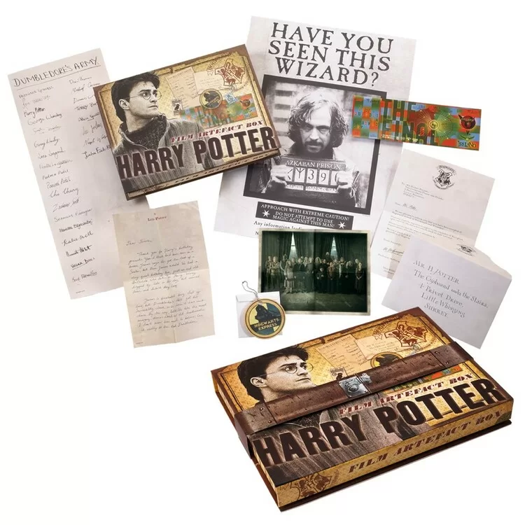 Stylová sběratelská sada obsahuje 7 ikonických předmětů spojených s Harry Potterem. Krabice má rozměry 20 × 28 cm.