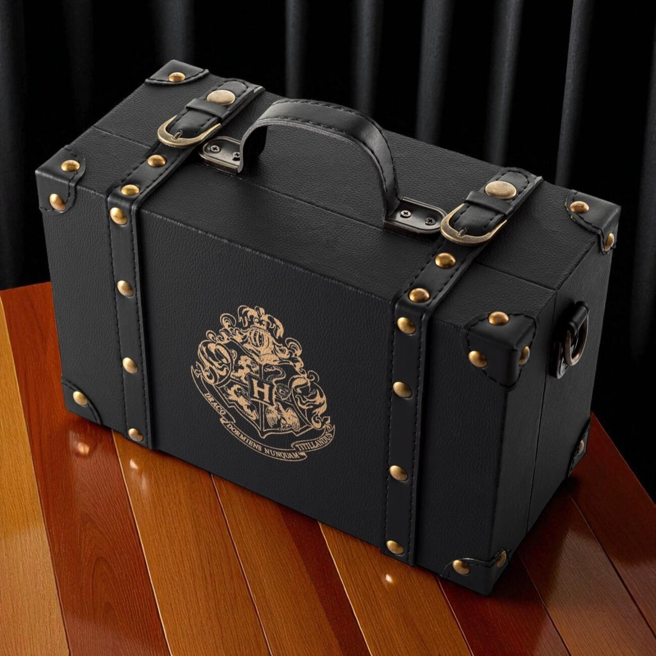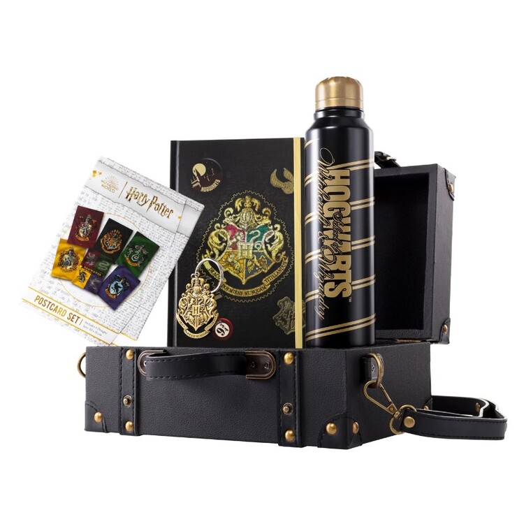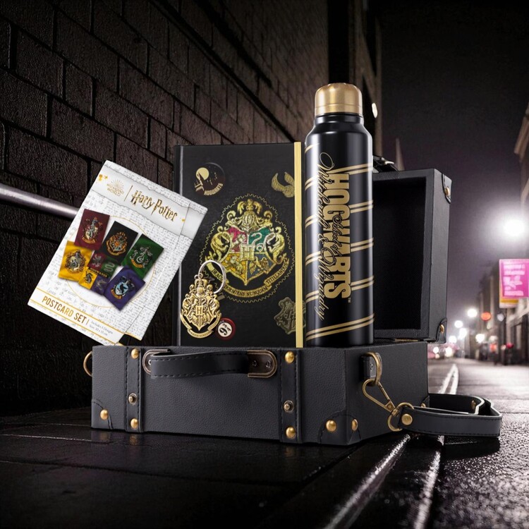 Stylová dárková sada pro fanoušky Harryho Pottera, která vzdává hold legendární škole čar a kouzel. Najdeš v ní kufřík s popruhem, zápisník A5, kovovou láhev, přívěsek na klíče a pohlednice – vše s erbem Bradavic. Skvělý dárek i sběratelský kousek!