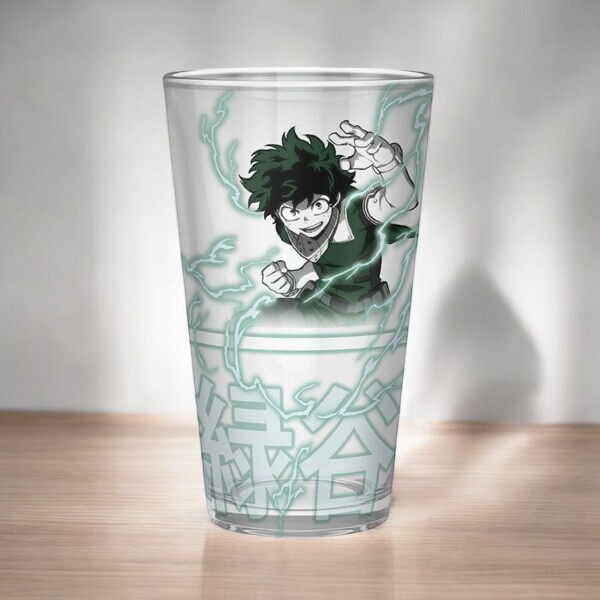 Kvalitní dárková sada s motivy My Hero Academia obsahuje XXL sklenici o objemu 400 ml, kovový odznáček a kapesní zápisník pro dobrodružné cesty.