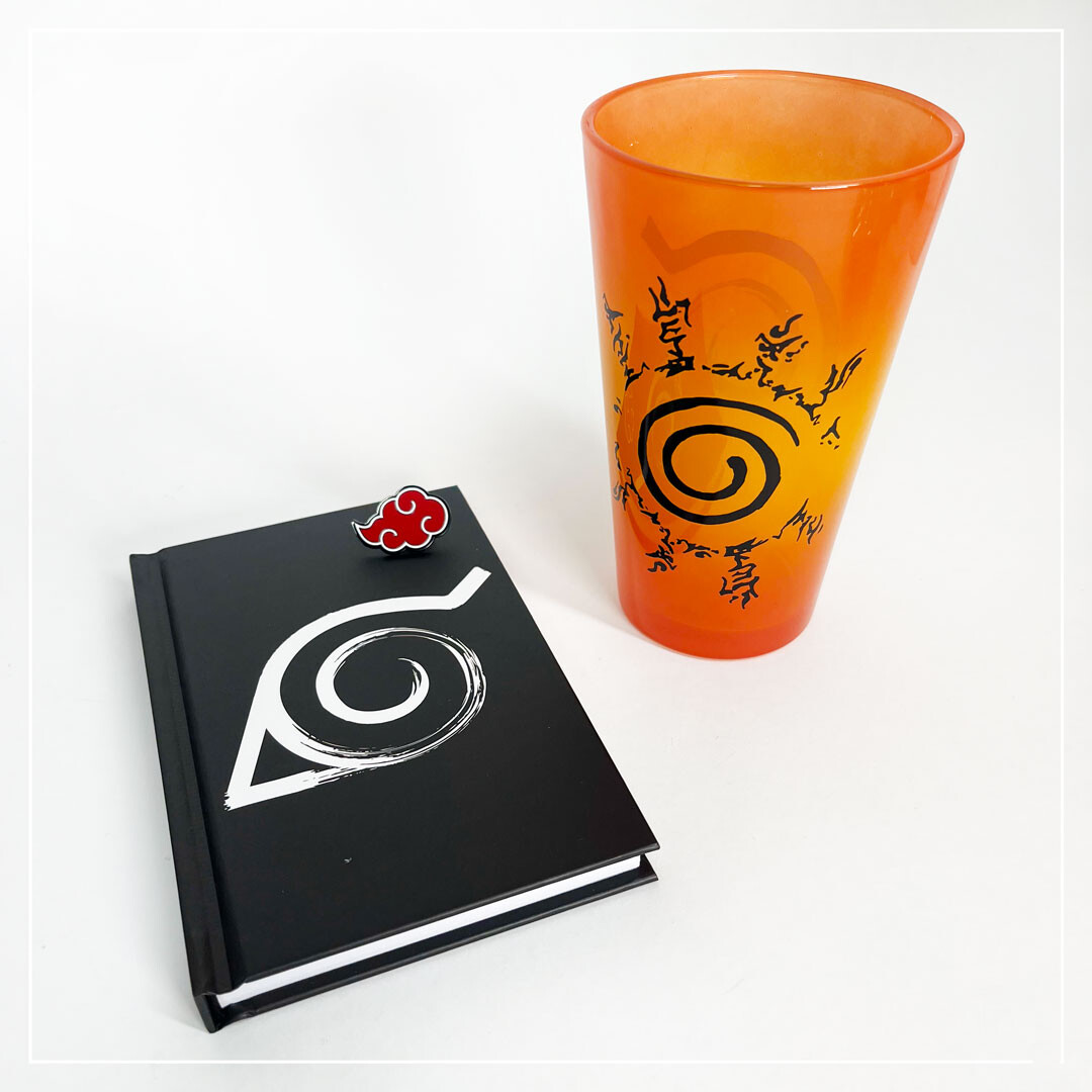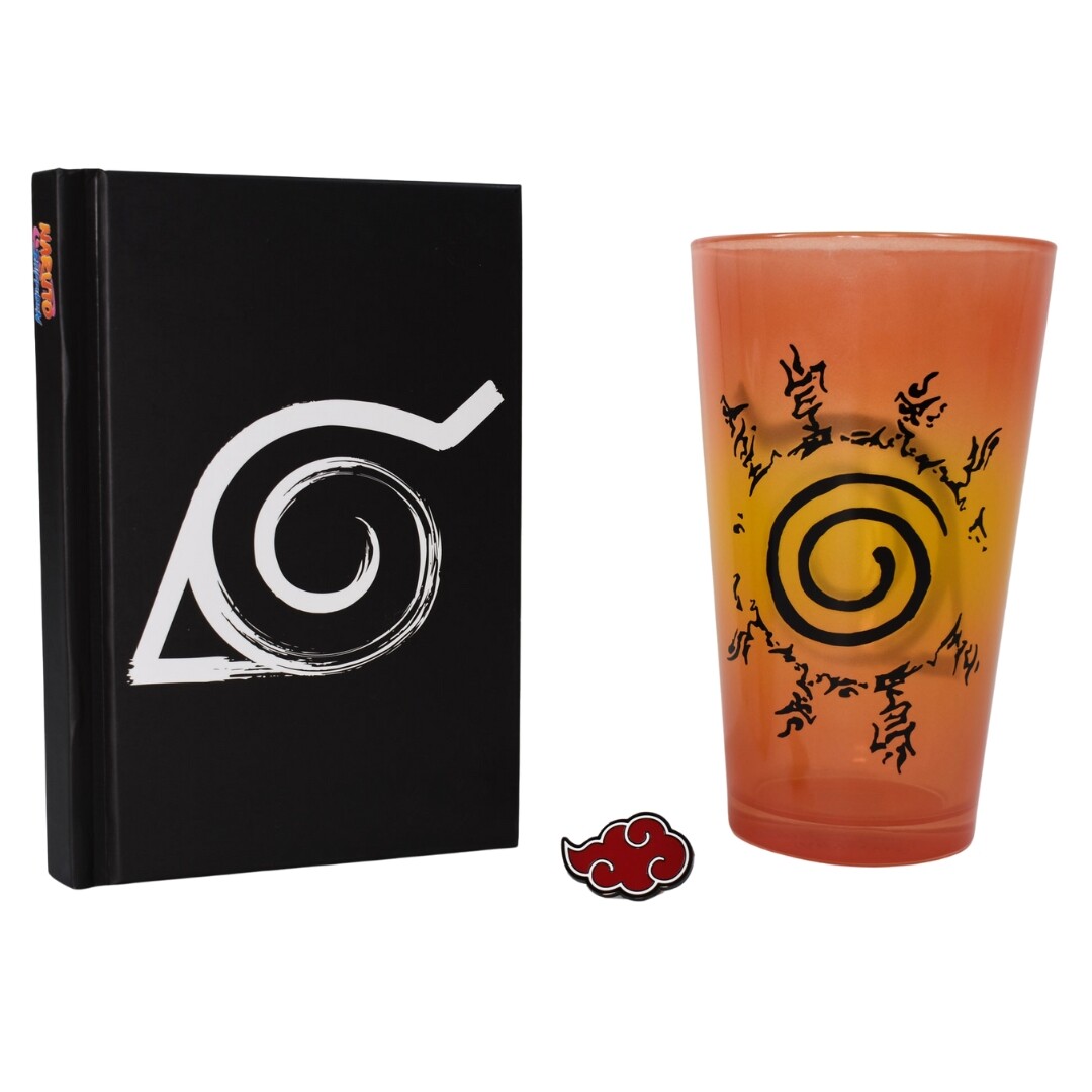 Tato stylová sada je perfektním dárkem pro každého Naruto fanouška! Obsahuje 400 ml sklenici, linkovaný zápisník A6 a kovový odznáček.
