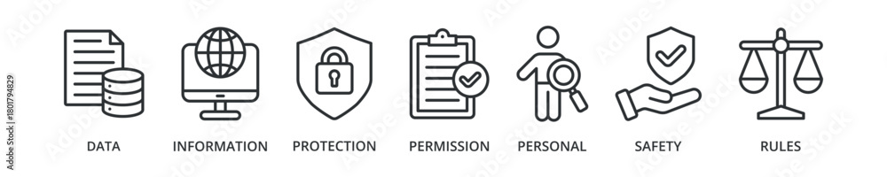 Obraz na plátně Data protection banner icon with data, information, protection, permission, pers