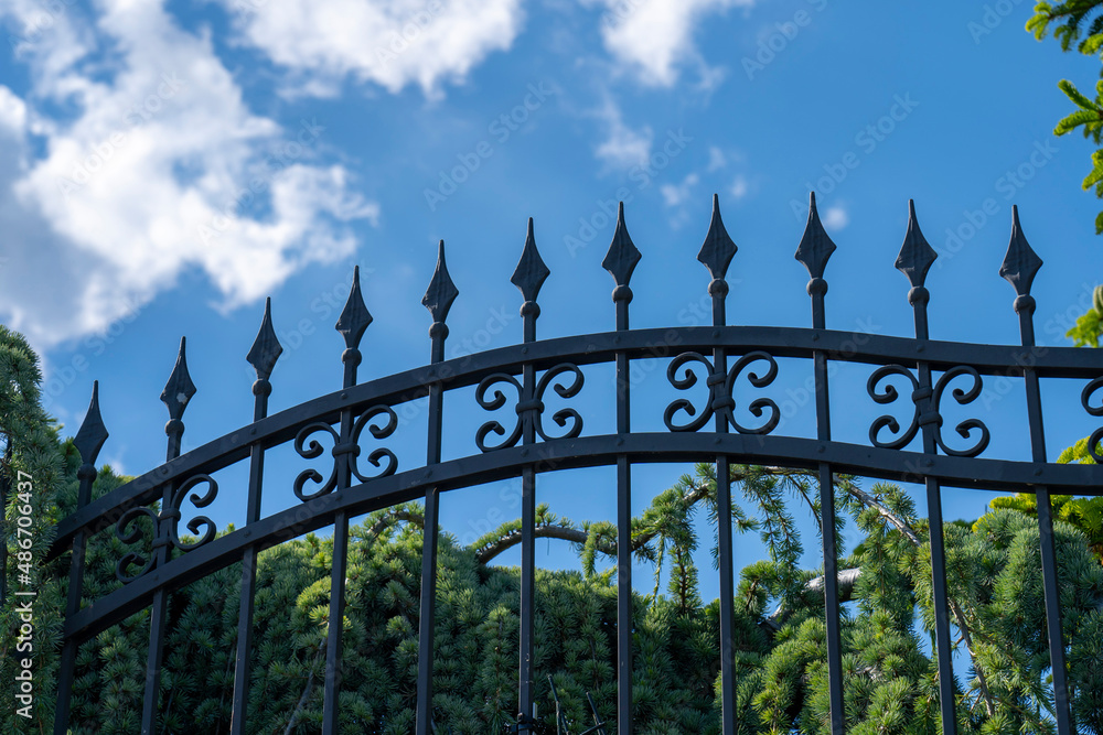 Obraz na plátně Decorative wrought iron fence. With blue sky.