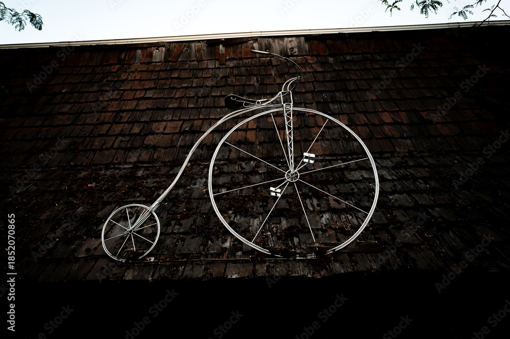 Obraz na plátně Decretive antique bicycle mounted on a rood