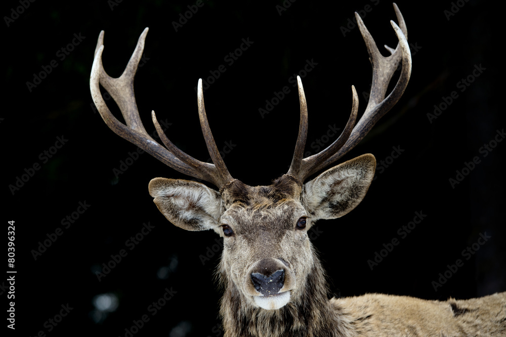 Obraz na plátně Deer on the black background