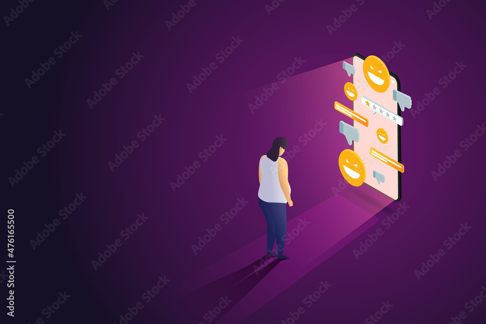 Obraz na plátně Depressed girl online bullying on smartphones.