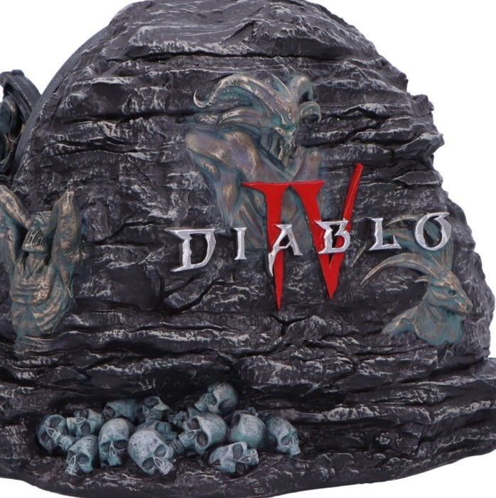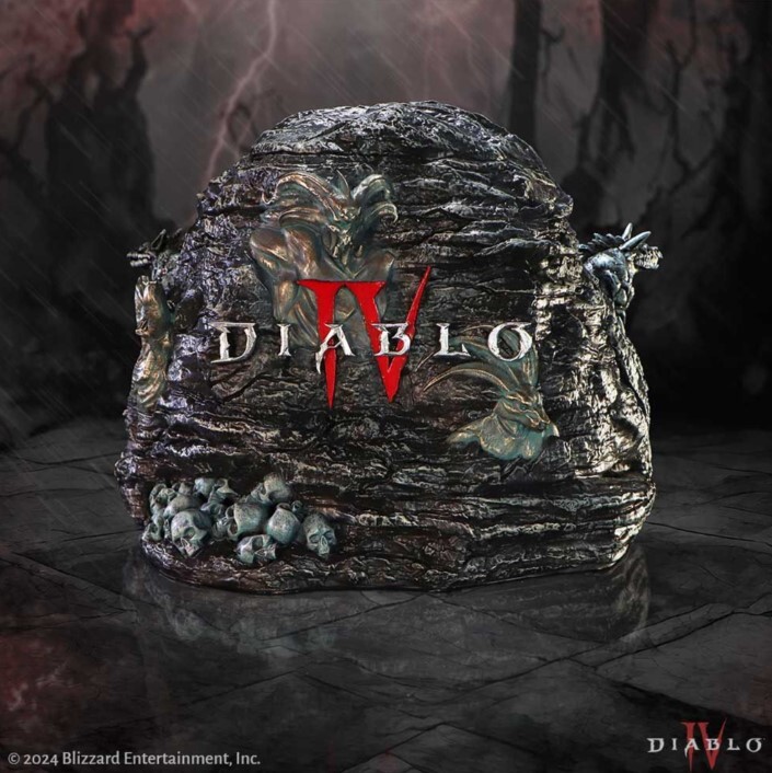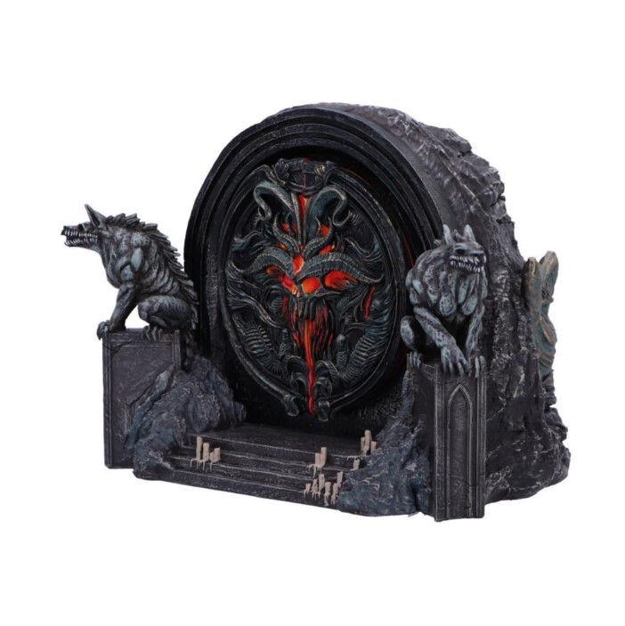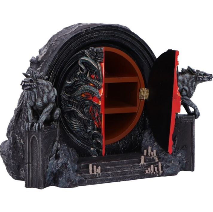Oficiální box Diablo IV, ručně malovaný, se strážícími vlky a otevíracími pekelnými vraty ukrývajícími úložný prostor na drobnosti. Pečlivé zpracování podtrhuje temnou atmosféru Sanctuary.