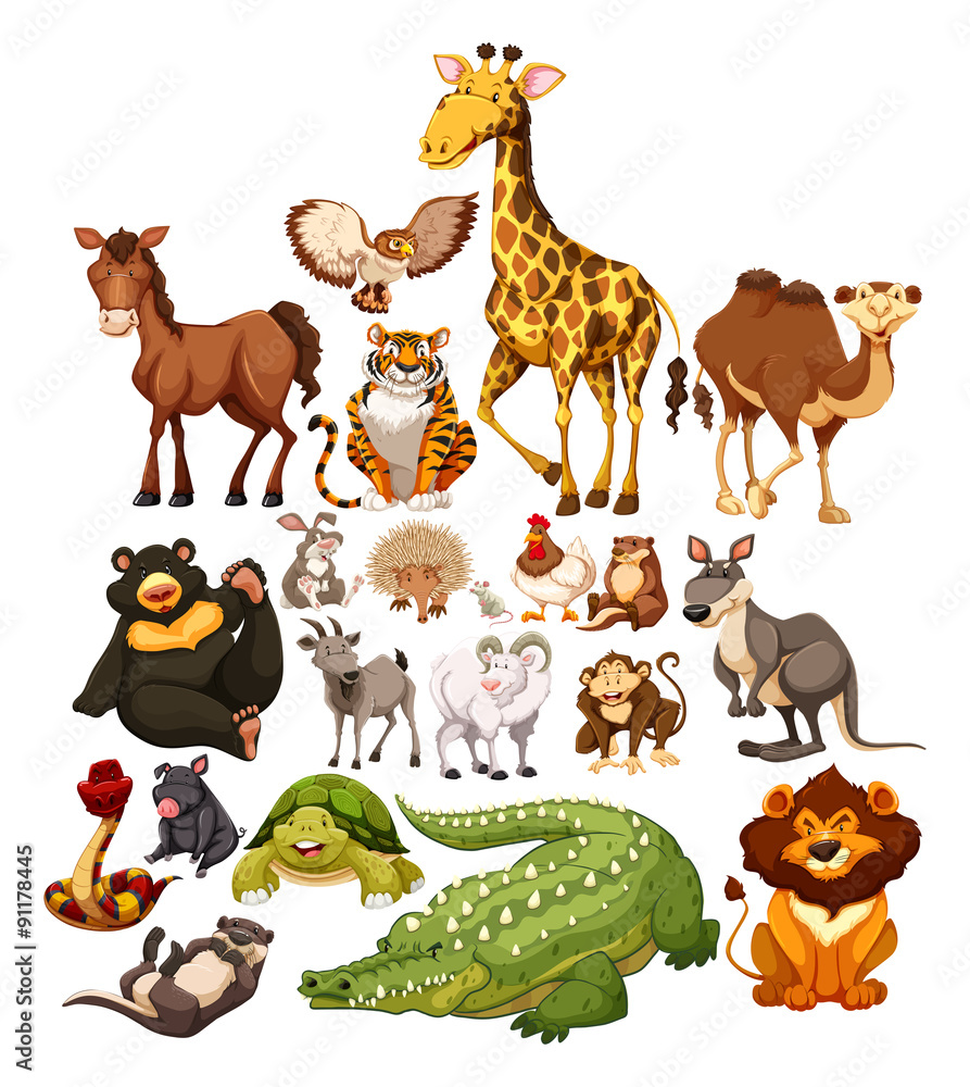 Obraz na plátně Different type of wild animals