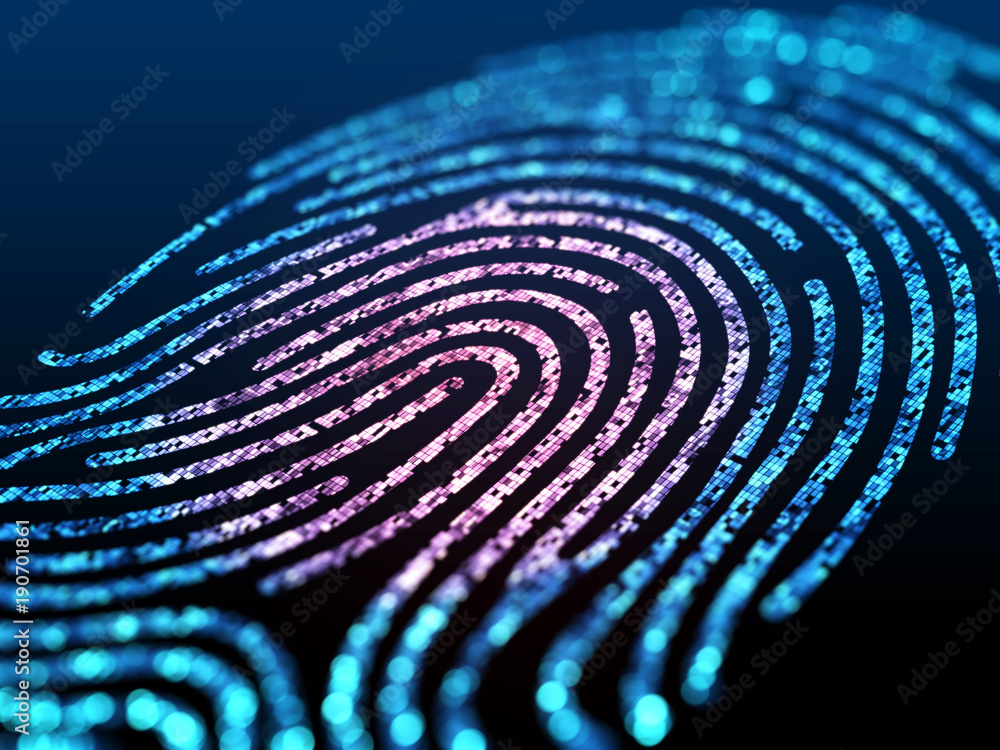 Obraz na plátně Digital fingerprint on black screen.