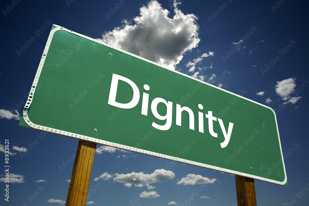 Fotografie Dignity Road Sign with Dramatic Clouds and Sky.