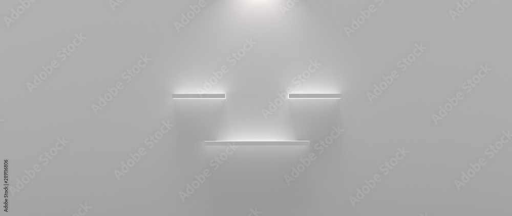 Obraz na plátně Diseño de repisa tridimensional con iluminación y diferentes niveles