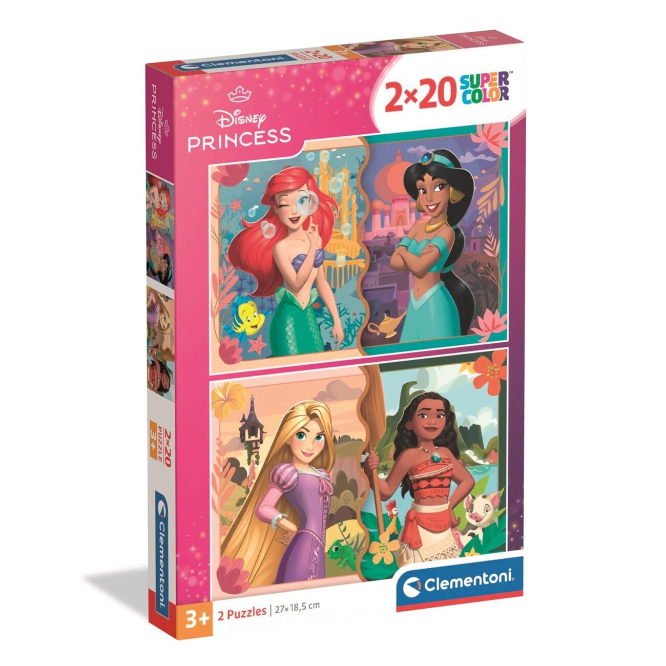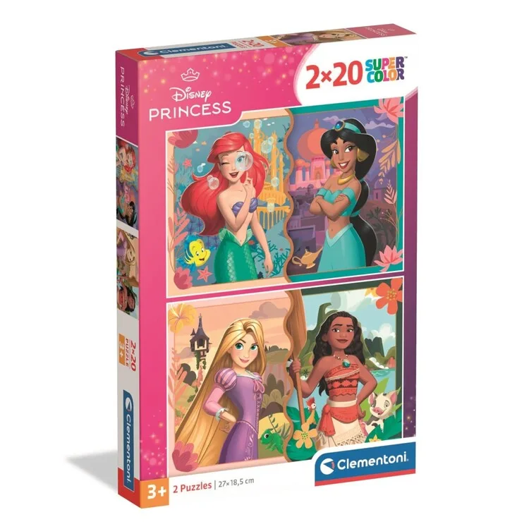 Dvoje puzzle Disney Princezny (2×20 dílků). Kouzelné motivy s oblíbenými hrdinkami lákají ke skládání, přiměřený počet dílků podporuje jistý postup. Děti si tak přirozeně trénují jemnou motoriku i soustředění. Puzzle Clementoni vynikají ostrostí tisku a přesným výsekem, takže skládání jde skoro samo. Baleno v robustní, elegantní krabici.