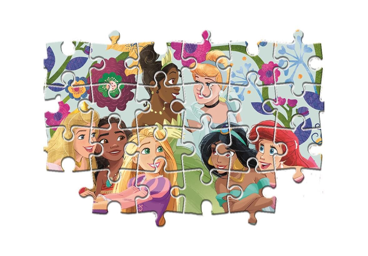 Dvoje puzzle Disney Princezny (2×60 dílků). Kouzelné motivy s oblíbenými hrdinkami lákají ke skládání. Počet dílků je přívětivý pro děti, jasné barvy pomáhají s orientací v obrázku. Děti si přirozeně trénují jemnou motoriku i soustředění. Puzzle Clementoni vynikají ostrostí tisku a přesným výsekem, takže skládání jde skoro samo. Baleno v robustní, elegantní krabici.