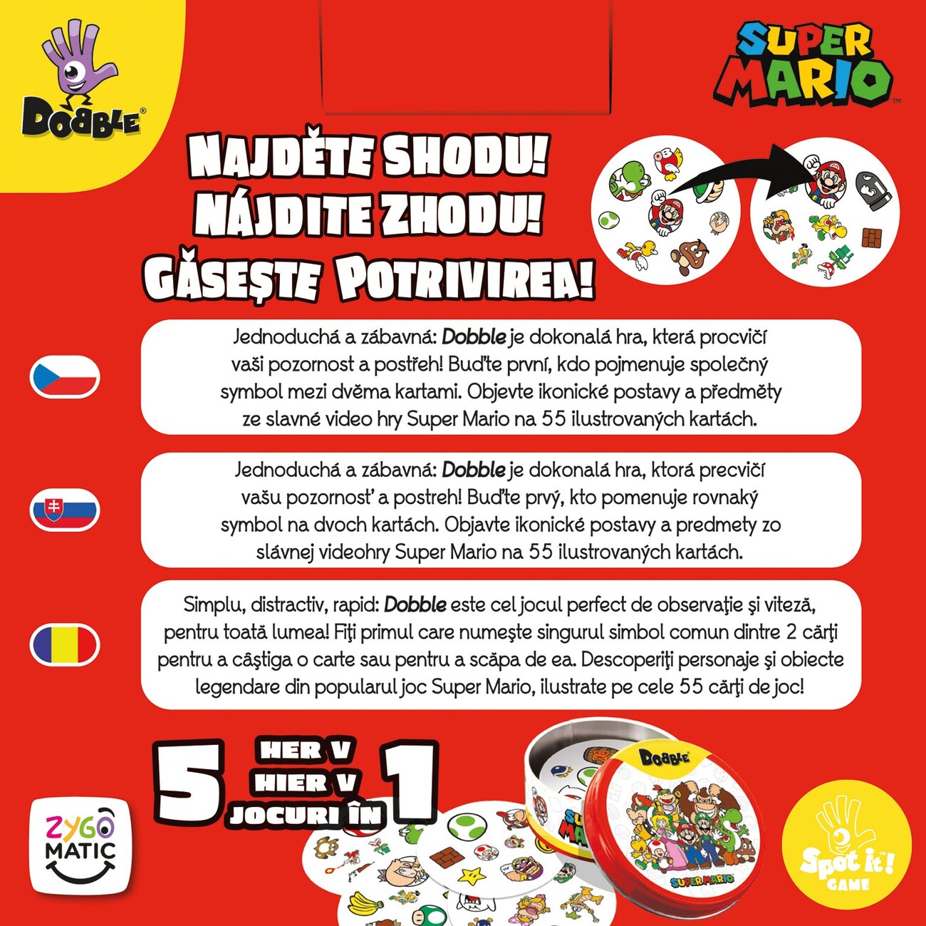 Populární svižná postřehová hra Dobble na motivy Super Maria