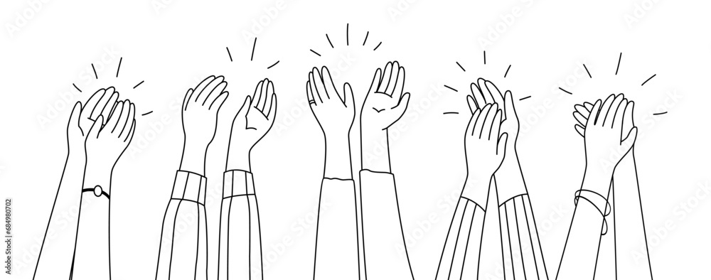 Fotografie Doodle applause hands, isolated vector raised clapping arms in joyous applauding, a universal symbol of appreciation and celebration