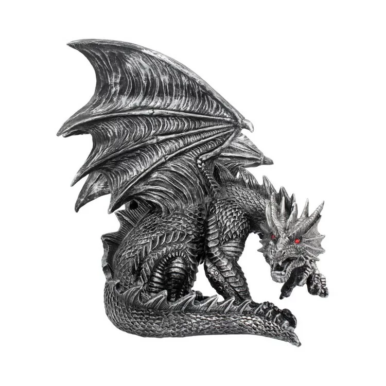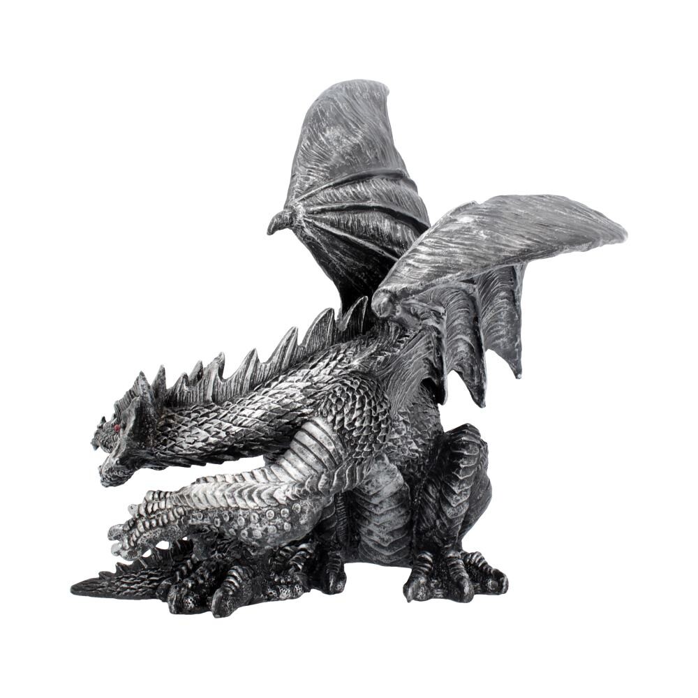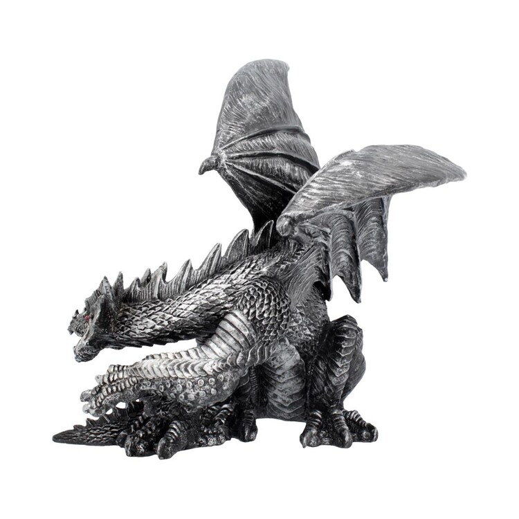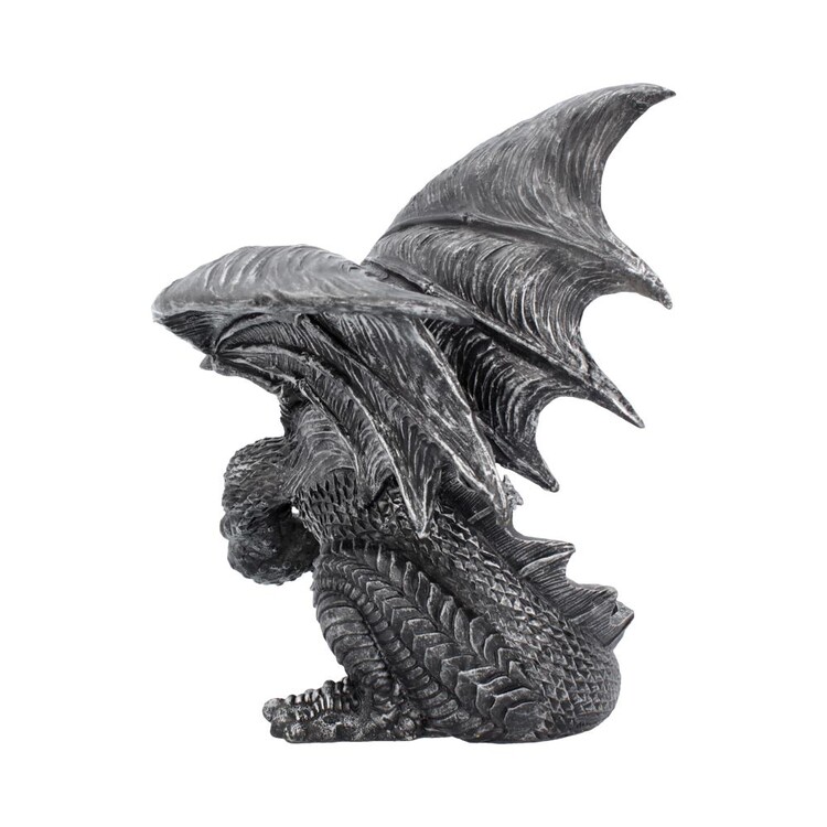 Tento gotický drak byl vytvořen alternativní značkou Nemesis Now. Tento pewterově zbarvený drak sedí, jako by chránil svůj poklad. Jeho hlava je otočena doprava a jeho pronikavé červené oči se upírají na svou kořist, zatímco jeho křídla jsou roztažena vysoko nad ním. Odlit z nejkvalitnější pryskyřice a pečlivě ručně malovaný, tento drak je ideální pro každého, kdo má vášeň pro mytické bytosti.