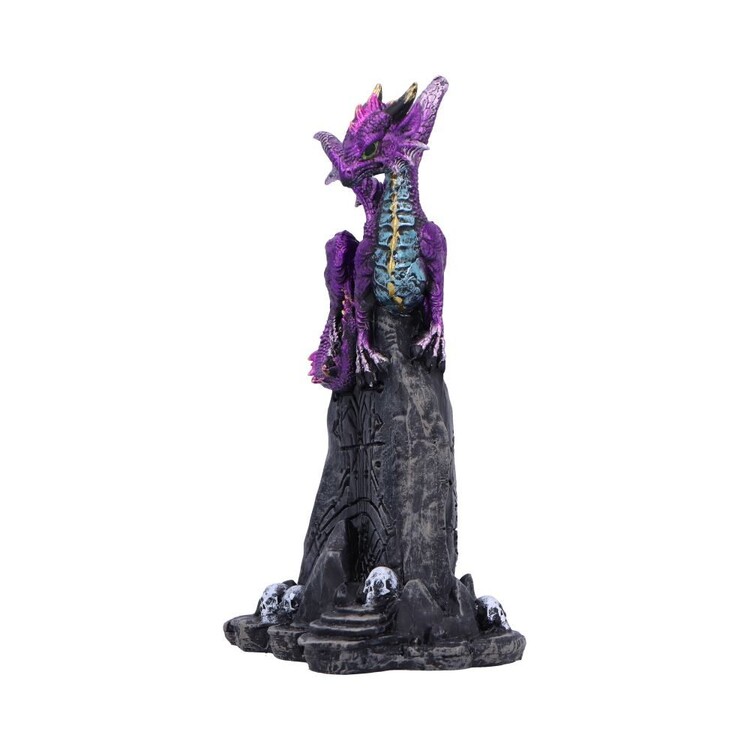 Tato živá dračí figurka představuje ručně malovaného fialového tvora obtáčejícího se kolem temného sloupu. S ametystovými metalickými šupinami, jemnými stříbrnými odlesky a runovými i lebkovými motivy na podstavci je vyrobena z prémiové pryskyřice, která zachycuje každý detail. Působivý sběratelský kousek pro fanoušky draků, gotického dekoru i milovníky fantasy. Zabaleno v dárkové krabičce s logem, perfektní pro obdarování nebo ochranu při skladování.