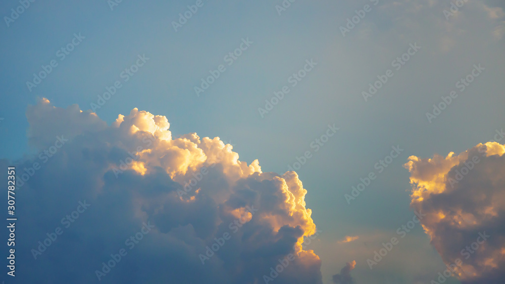 Obraz na plátně Dramatic blue sky and clouds at sunset or evening time.