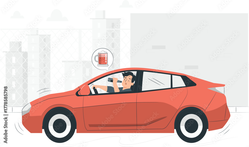 Obraz na plátně Drunk driver swerving in car with beer and bottle driving