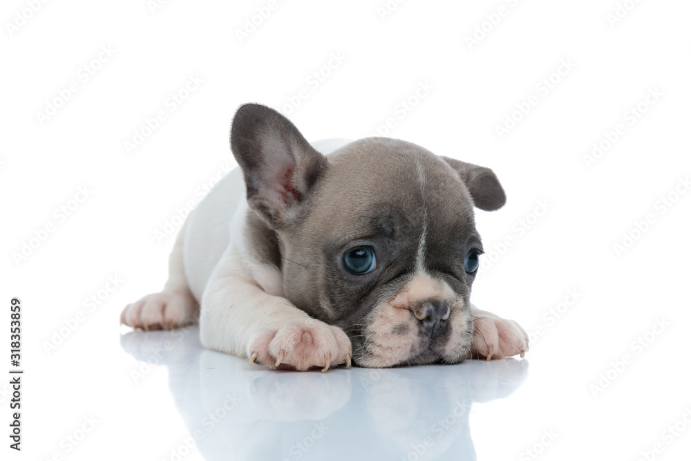 Obraz na plátně Dutiful French bulldog puppy resting and looking away