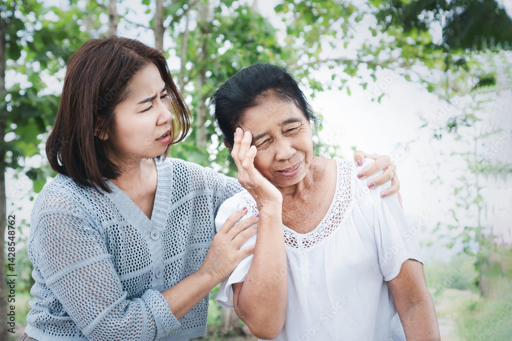 Obraz na plátně elderly asian woman feel dizzy and almost faints while walking outside caused by