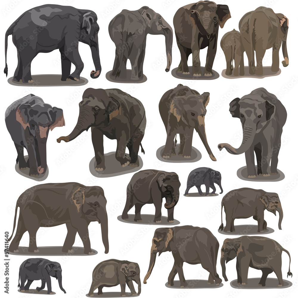 Obraz na plátně Elephants in Different Poses