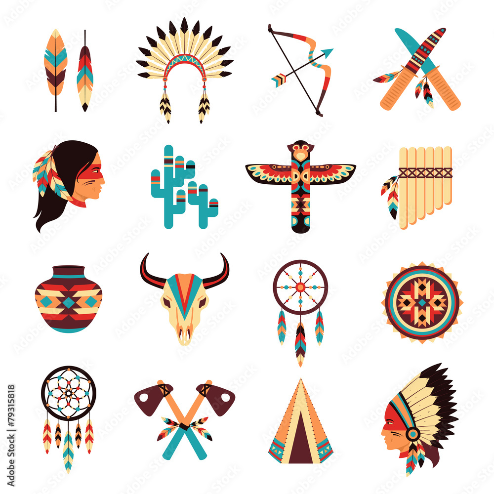 Fotografie Ethnic american indigenous icons set