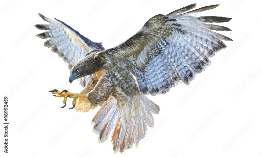 Fotografie Falcon flying hand draw and paint vector illustration on white background