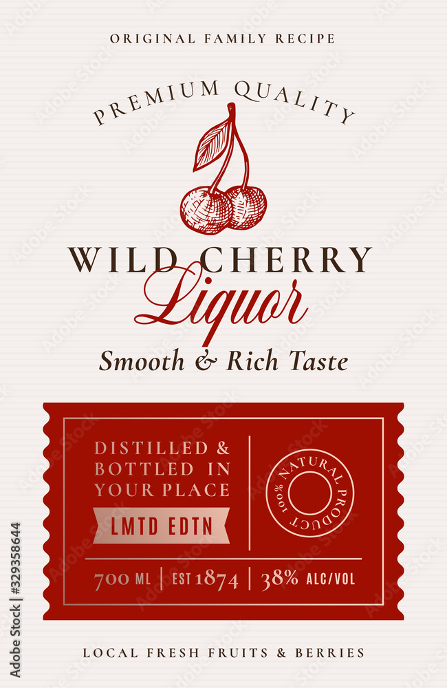 Fotografie Family Recipe Cherry Liquor Acohol Label