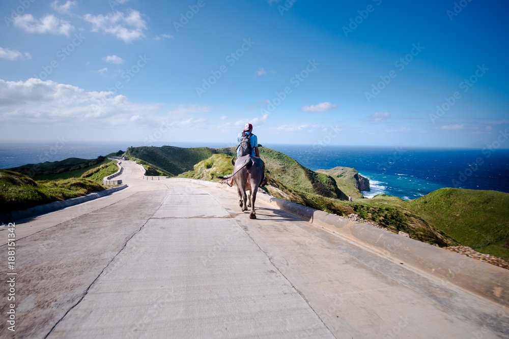 Fotografie Farmer riding his Carabao at the hills of Batanes, Philippines