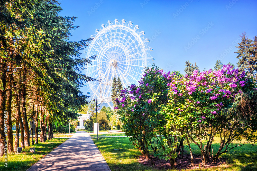 Fotografie Ferris wheel Sun of Moscow at VDNKh and lilac, Moscow