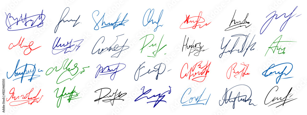 Fotografie Fictitious handwritten signature scribbles for signing documents