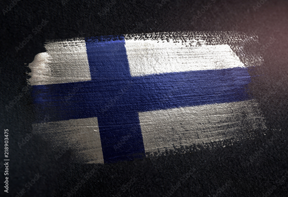 Obraz na plátně Finland Flag Made of Metallic Brush Paint on Grunge Dark Wall