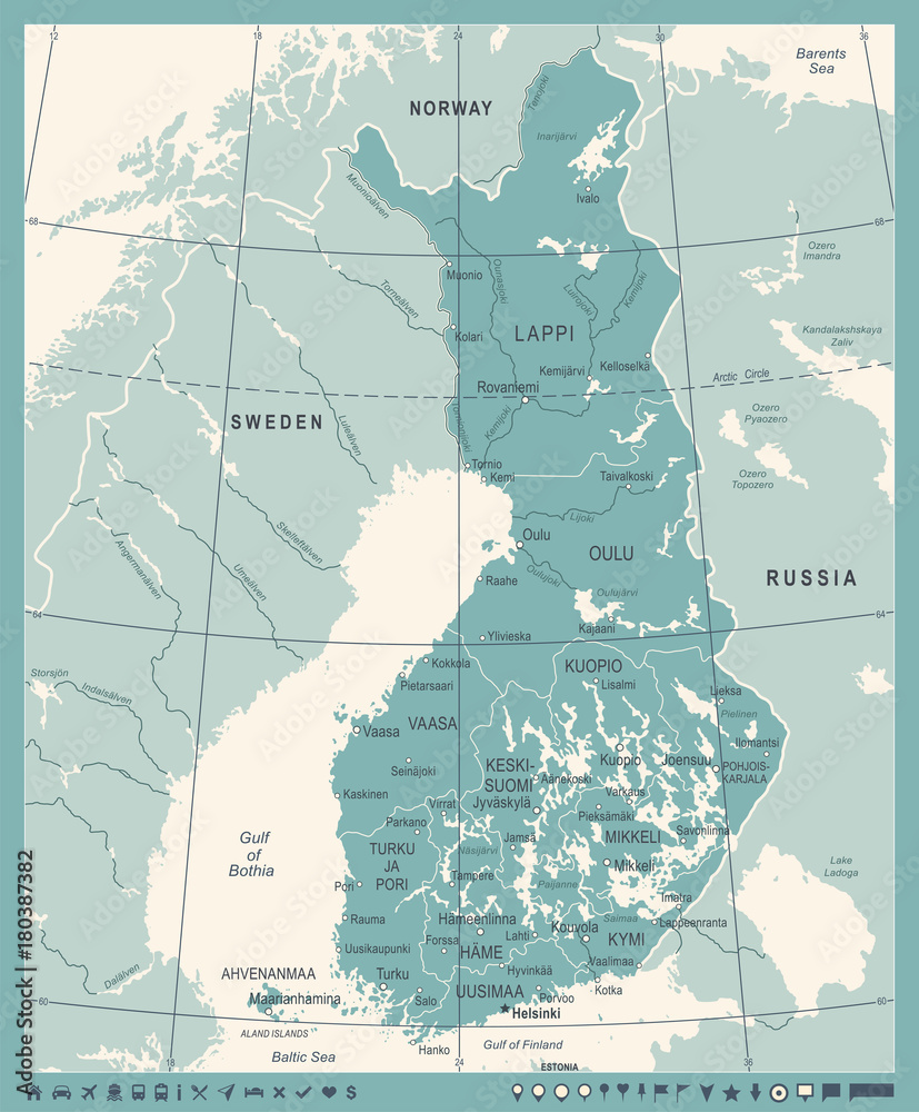 Obraz na plátně Finland Map - Vintage Detailed Vector Illustration