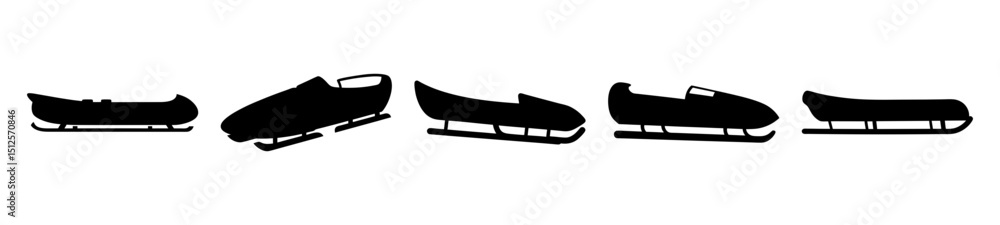 Obraz na plátně Five black sled silhouettes in varying shapes and orientations on white