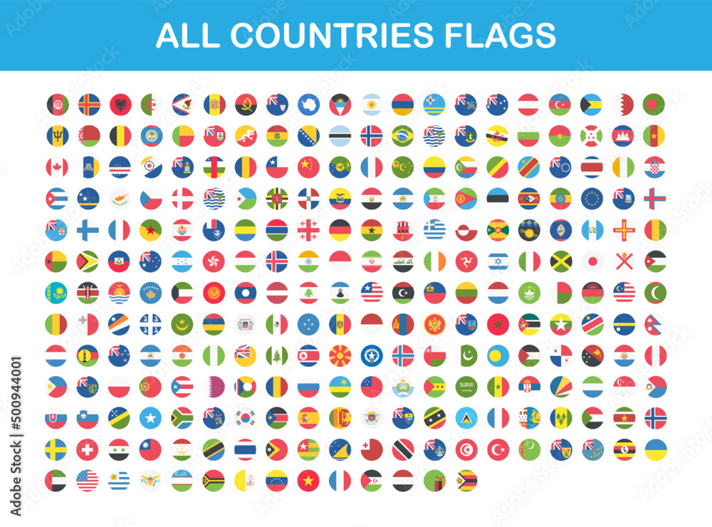 Obraz na plátně Flags of all countries round web buttons in flat. Vector EPS 10
