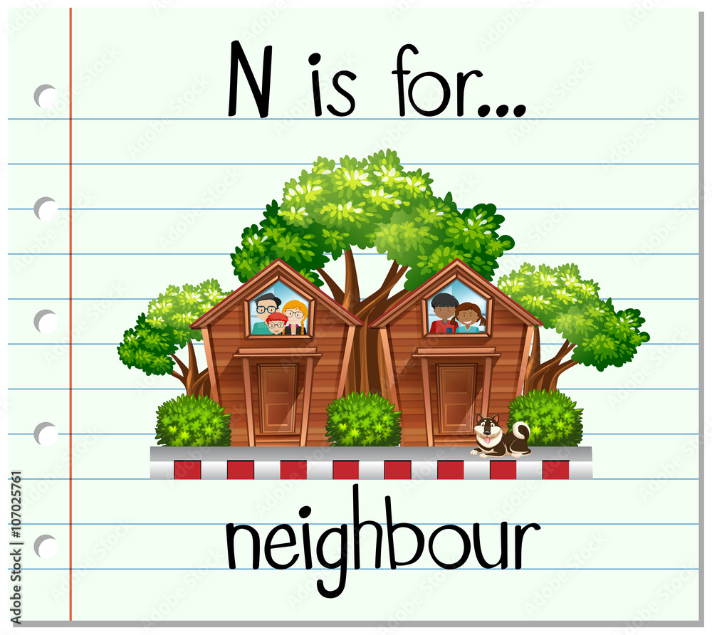Fotografie Flashcard letter N is for neighbour