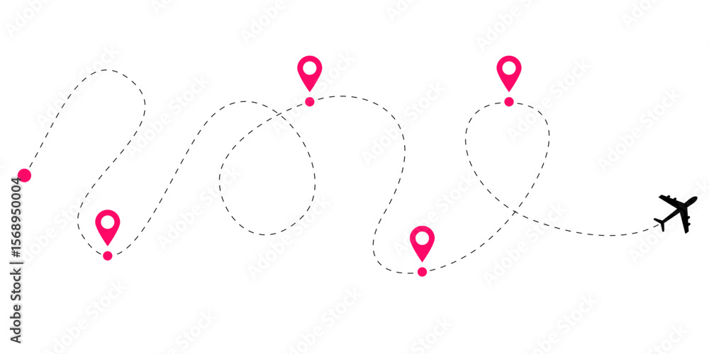 Fotografie Flight route line set with airplane path illustrations featuring dashed tracking